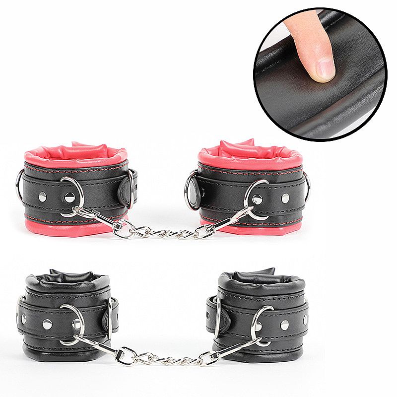 Realize diversas fantasias com este luxuoso par de algemas produzidas em PU reforçado com fivelas ajustáveis e esponja interna.